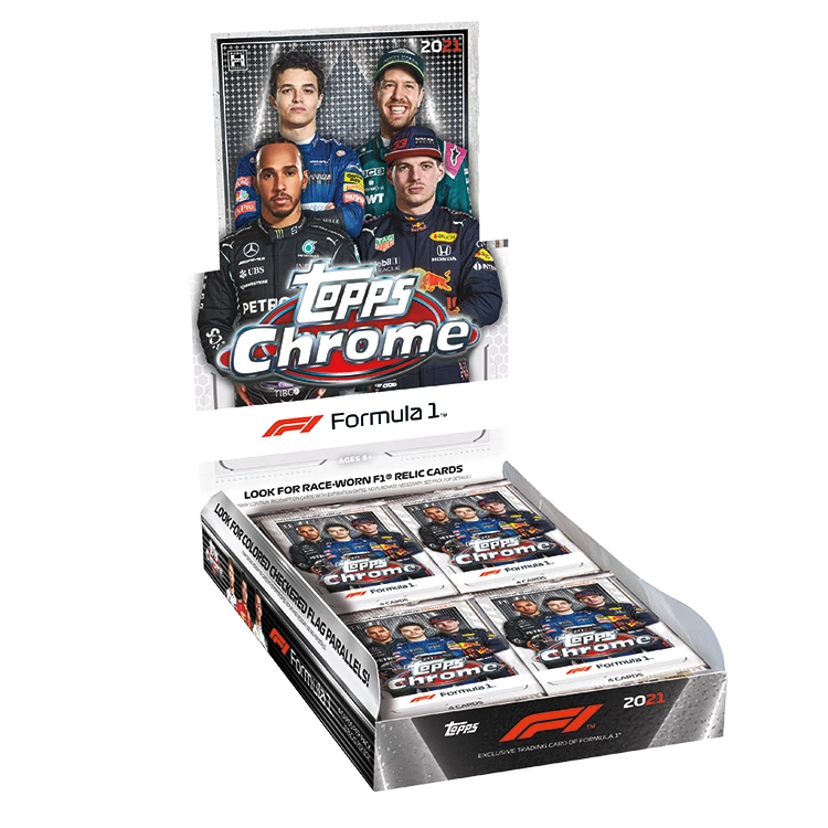 2021 Topps Chrome Formula 1 startet mit dem nächsten Chrome Release wieder voll durch und zeigt die besten F1 und F2 Fahrer, Crew-Mitarbeiter und Rennwagen auf einer Vielzahl unterschiedlicher Base- und Insert-Designs! Halte Ausschau nach Chrome Autogrammkarten der besten F1 & F2 Fahrer und Teamleiter! Entdecke ein 200 Karten umfassendes Base-Set, neue spannende Inserts, wie Path to the Podium, Redliners und 1961 Topps Sports Cars.