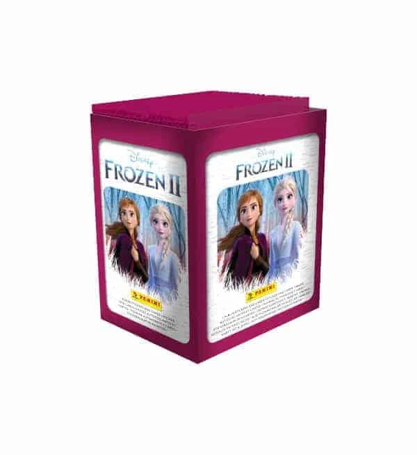 Display mit 50 Tüten der Sticker- und Cards-Serie “Panini Disney Frozen Die Eiskönigin 2”. Jede Tüte enthält jeweils 4 Sticker und 1 Trading Card.