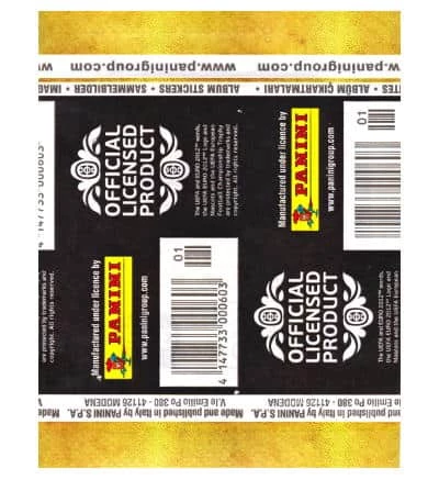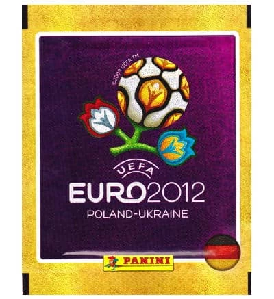 100 Tüten mit insgesamt 500 Sammelbildern der Panini EURO 2012 Sticker-Kollektion. Es handelt sich hierbei um die deutsche Version der Sticker-Tüten, in denen auch die Nummern D1 bis D20 für das Poster im deutschen Album enthalten sind.