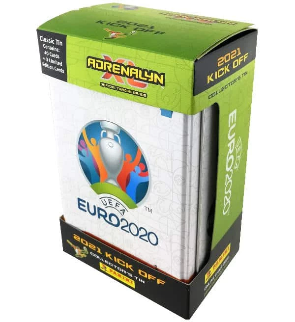 Panini EURO 2020 Adrenalyn XL 2021 KICK OFF Classic Tin mit 5 Tüten (=40 Karten) + 3 Limited Edition Cards.