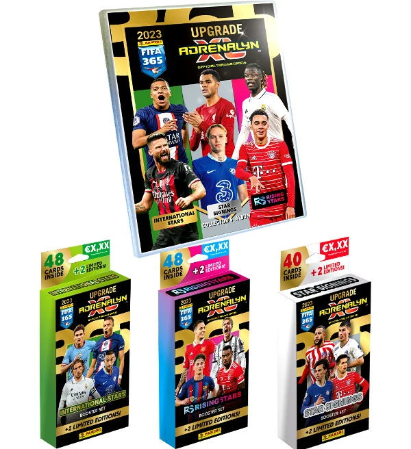Upgrade “Mega-Bundle” zur Panini FIFA 365 2023 Adrenalyn XL Trading Card Serie mit folgendem Inhalt: