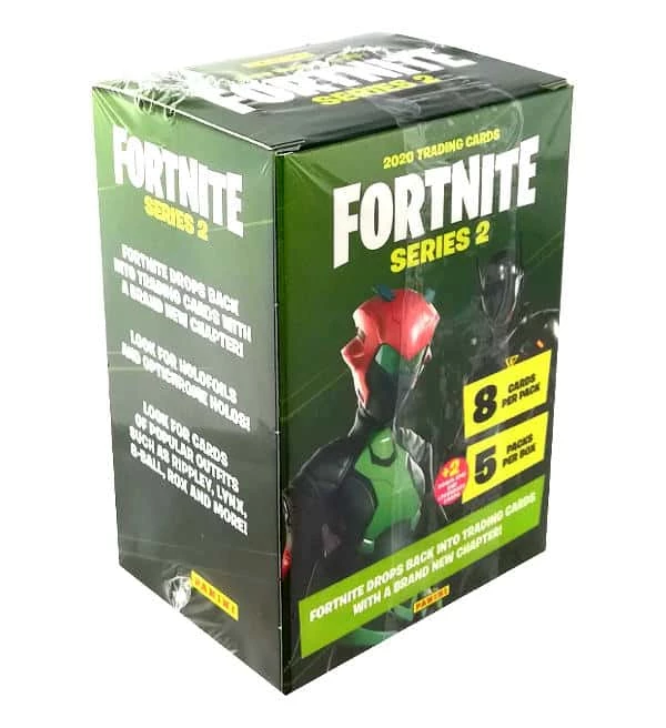 Blaster Box der Panini Fortnite Series 2 Trading Cards Kollektion mit 5 Boostern (=40 Karten) + 2 Bonus Cards (EPIC / LEGENDARY). Insgesamt sind in der Blaster Box 42 Sammelkarten enthalten.