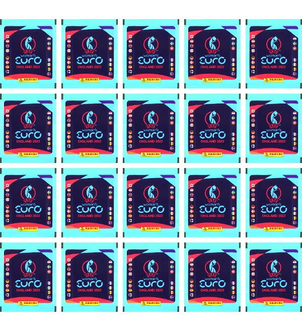 20 Tüten aus der “Panini Frauen EM 2022” Sticker-Kollektion. Jede Tüte enthält 5 Sammelbilder.