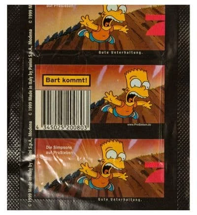 Original Tüte zur Stickerserie Panini Fußball 2000. Die ungeöffnete Tüte der Saison 2000 enthält noch alle 5 Sticker. Deutscher Meister in dieser Spielzeit wurde der FC Bayern München nur aufgrund der besseren Tordifferenz vor Bayer 04 Leverkusen. Beide Mannschaften kamen auf 73 Punkte, jedoch hatte der FCB am Ende +45 Tore, während die Werkself nur auf +38 kam.