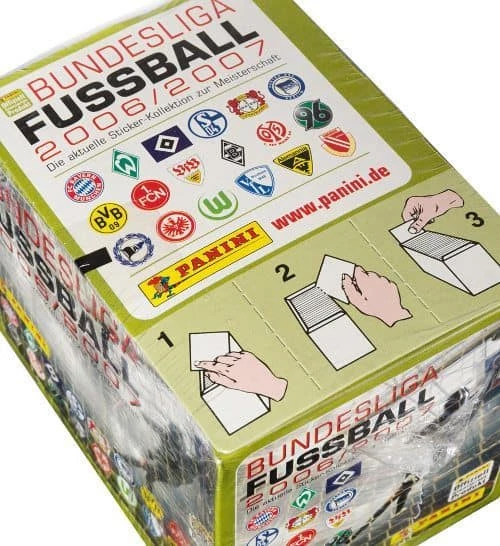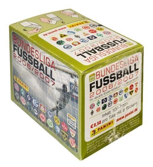 Die Box enthält 100 Tüten à 6 Bilder zur Bundesliga Saison 2006 2007. Insgesamt sind also 600 Sticker in dem Display enthalten.