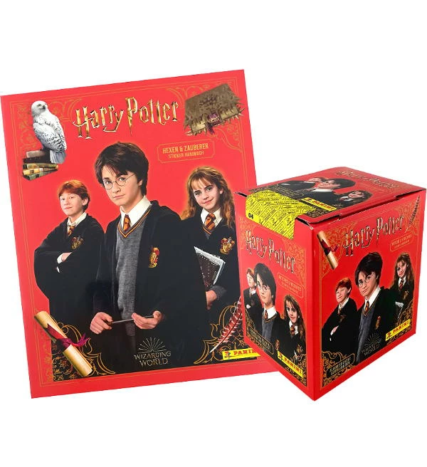Album + Display mit 36 Tüten zur Panini Harry Potter Anthology Sticker-Kollektion. Jede Tüte enthält 5 Sticker. Insgesamt können 192 Sticker gesammelt werden.