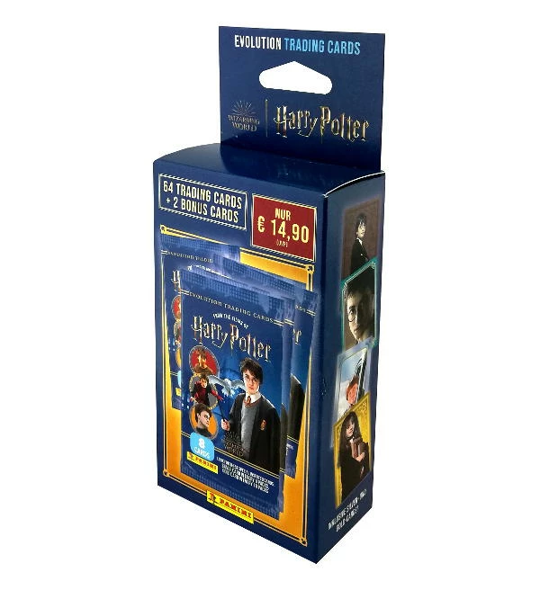 Eco-Blister mit 8 Tüten + 2 Bonus Cards zur “Panini Harry Potter Evolution” Trading Cards Kollektion. Jede Tüte enthält 8 Karten.