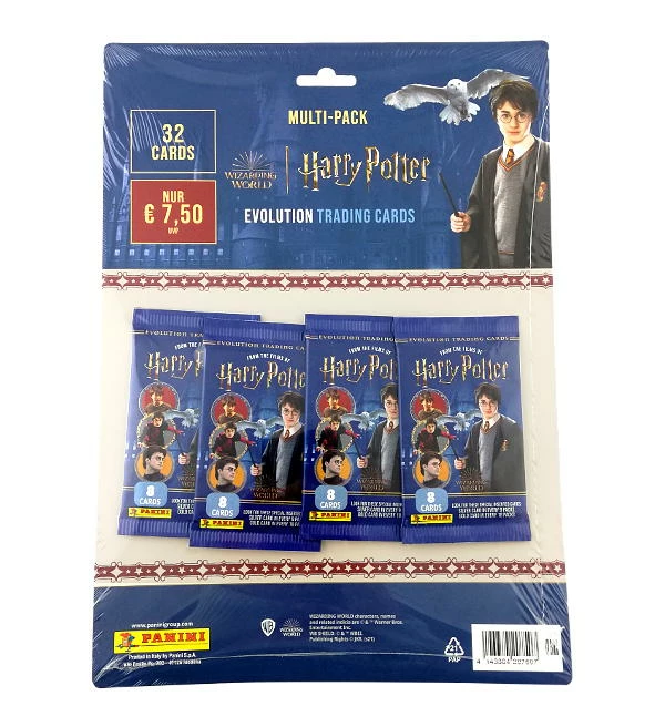 Multipack mit 4 Tüten zur “Panini Harry Potter Evolution” Trading Cards Kollektion. Jede Tüte enthält 8 Karten.