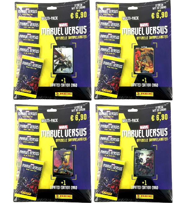 4 x Multi-Pack zur Panini Marvel Versus Trading Cards 2022 Kollektion mit folgendem Inhalt: