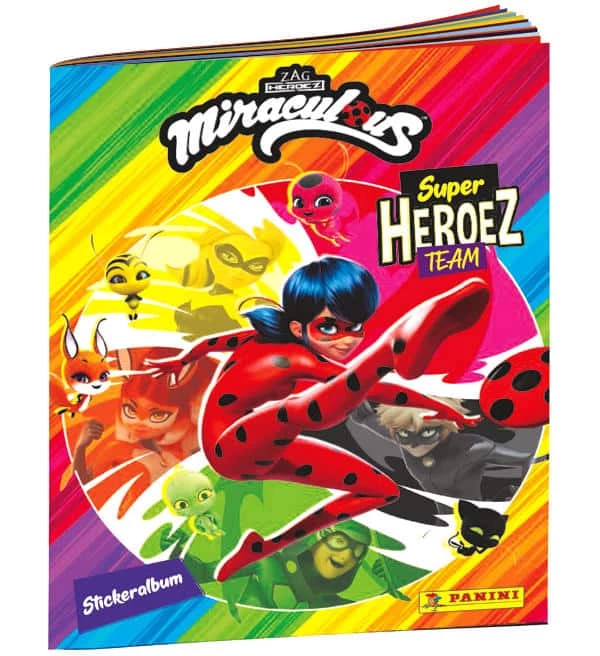 Album zur Panini Miraculous “Super Heroez Team” Sticker- und Cards-Kollektion. Das Sammelalbum zu dieser Hybrid-Serie hat 32 Seiten für 192 Sticker + 50 Karten.