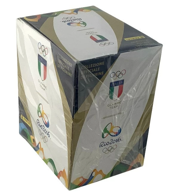 Display mit 50 Tüten zur Sticker Serie “Panini Olympic Team Italien Rio 2016”.