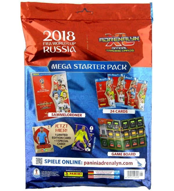 Der Panini WM 2018 Adrenalyn XL Starter Pack kommt in einer stylischen schimmernden Verpackung und ist ein absolutes Muss für jeden Sammler dieser Trading Card Serie.