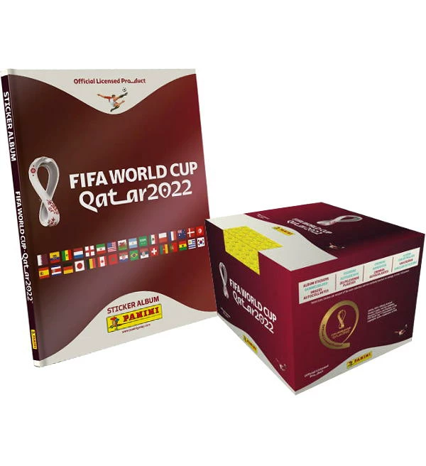 1 Hardcover Album + 1 Display mit 100 Tüten der Panini World Cup Qatar 2022 Sticker-Kollektion. Jede Tüte enthält 5 Sammelbilder.