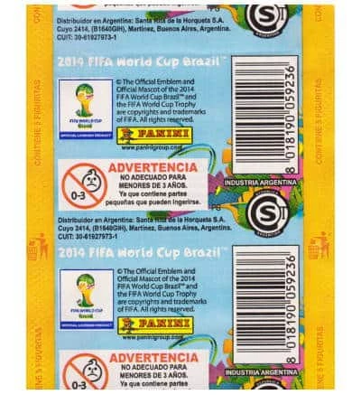 Argentinische Panini WM 2014 Tüte mit Gold-Rand. Diese Version wurde ausschließlich in Argentinien verkauft und enthält 5 Sammelbilder.