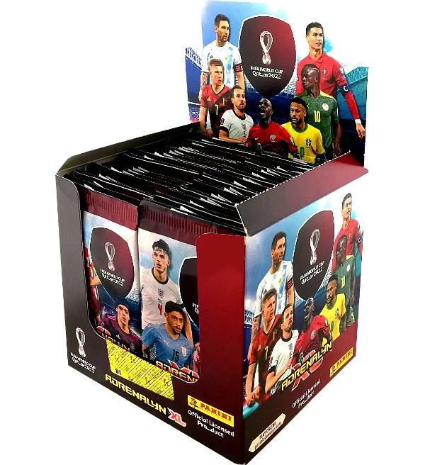 3 Displays mit jeweils 50 Tüten (=1200 Cards) zur “Panini World Cup Qatar 2022 Adrenalyn XL” Trading Cards Kollektion.